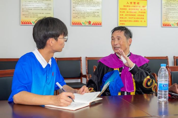 圖為實踐團成員祝嘉兵尋訪傳承人姜洪力。