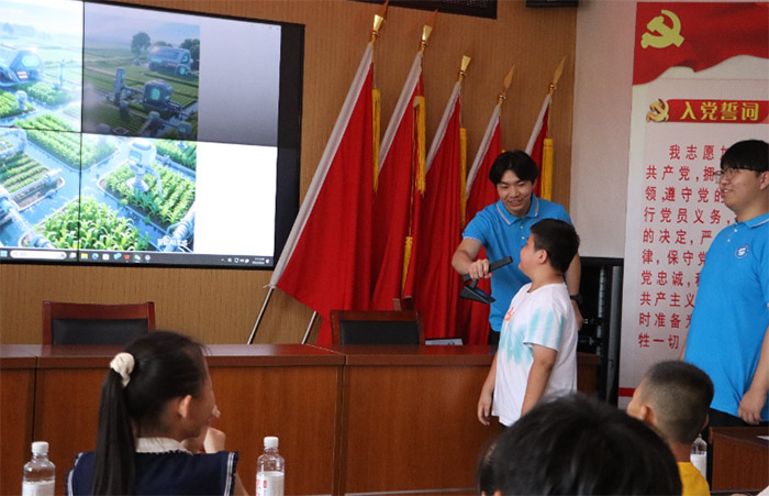 知識講解環節,實踐團隊成員用生動形象的語言,向孩子們介紹了機器人的基本概念、發展歷程以及在各個領域的應用。從農業生產中的播種機器人到家庭生活中的智能機器人,一個個鮮活的例子讓孩子們對機器人有了初步的認識,激發了他們對科技的好奇心和探索欲。