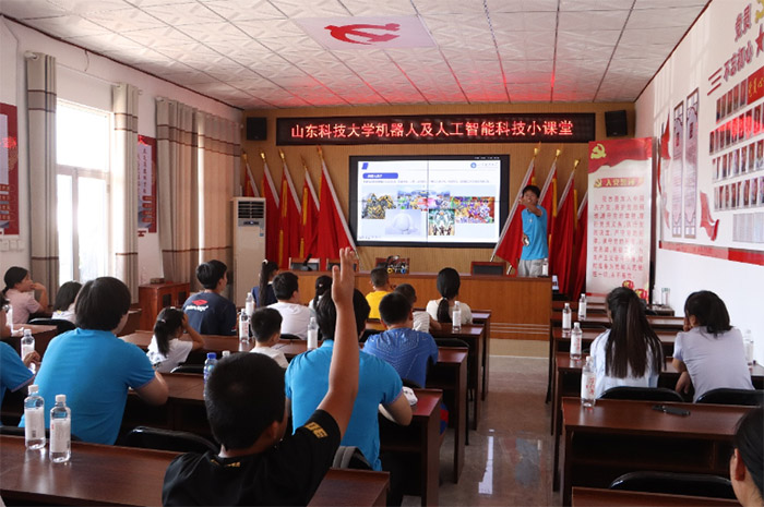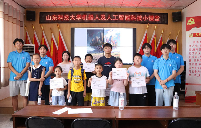 為積極響應國家科技創新教育號召,助力鄉村青少年科技素養提升,山東科技大學機械電子工程學院“智械先鋒”社會實踐團隊,于7月24日赴臨沂市莒南縣大店鎮莊家灘井村,開展以“機器人科技+AI小課堂”為主題的支教實踐活動,為當地孩子們打開一扇通往科技世界的大門,播撒科技創新的種子。