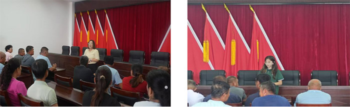 隨后,負責人萬怡然同學進行了推廣教育發言。實踐團的其他成員則向村干部和村民們分發著宣傳單。方言如同一條溫情的紐帶,承載著鄉親們深厚的情感,卻也像一道無形的藩籬,有時會阻隔更廣闊信息的流入。當一位花甲老人認真地看著推廣宣傳單,模仿著說幾個簡單字句時,無意間蹦出的方言諧音,瞬間點燃了滿屋善意的笑聲。這笑聲里沒有絲毫隔閡,只有共同學習、其樂融融的熱忱。