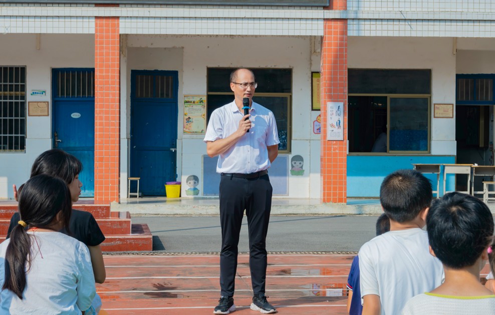 隨后,界牌鄉(xiāng)中心小學(xué)校長(zhǎng)楊日宣發(fā)表講話。他對(duì)中國(guó)石油大學(xué)(華東)向陽(yáng)花公益助學(xué)團(tuán)隊(duì)沐曦隊(duì)的到來(lái)表示熱烈歡迎和衷心感謝,強(qiáng)調(diào)了教育在鄉(xiāng)村振興中的重要作用,希望同學(xué)們能珍惜這次夏令營(yíng)機(jī)會(huì),積極參與各項(xiàng)活動(dòng),在學(xué)習(xí)和交流中增長(zhǎng)見(jiàn)識(shí)、提升自我,同時(shí)也期待沐曦隊(duì)能為學(xué)校帶來(lái)新的教育理念和活力,助力鄉(xiāng)村教育發(fā)展。