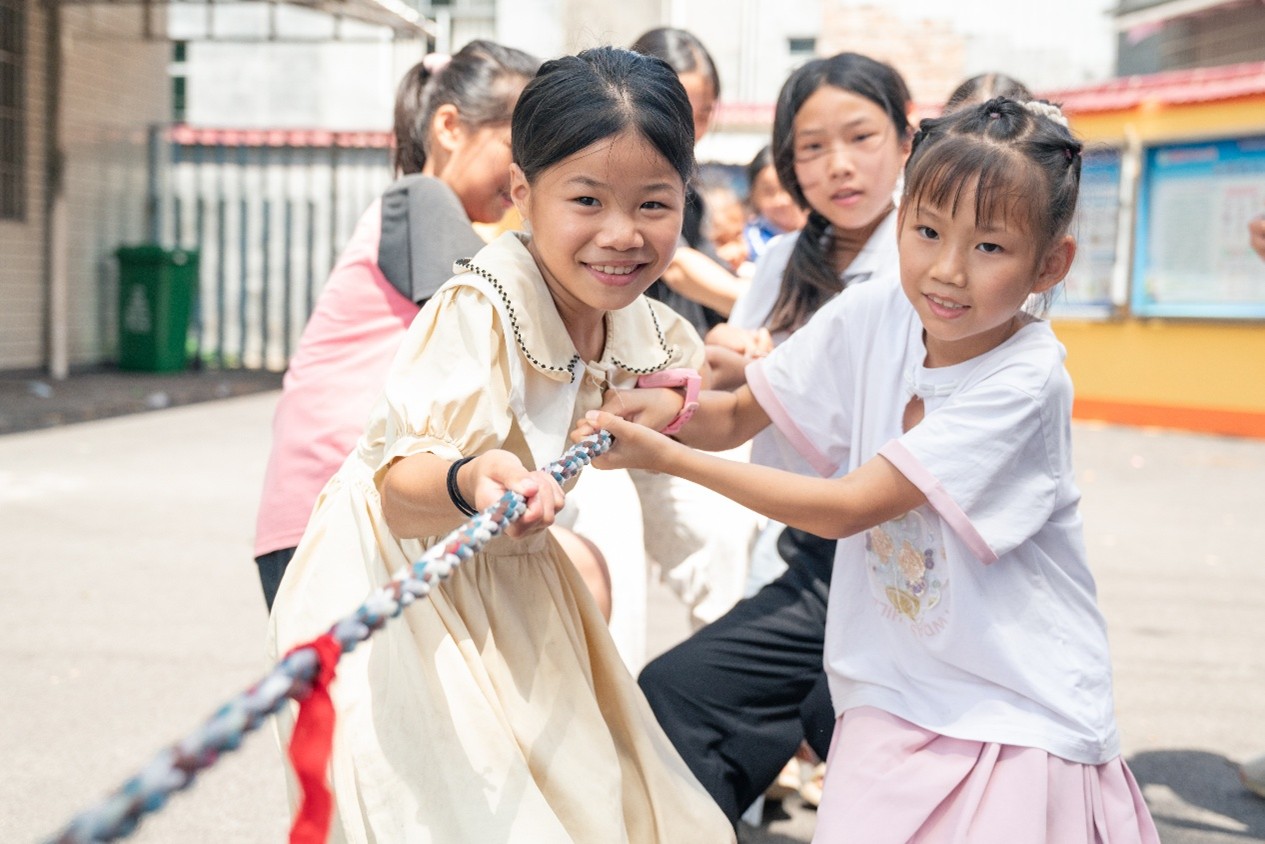 運動會伊始,志愿者們將凳子搬到陰涼處,為觀賽學(xué)生營造舒適環(huán)境,隨后以裁判身份組織各項賽事,包括考驗專注力的乒乓球過河、鍛煉協(xié)作力的紙杯金字塔、講究配合的兩人三足與夾氣球跑,以及充滿趣味的套娃娃和展現(xiàn)團隊凝聚力的拔河等項目。賽場上,學(xué)生們積極參與,在競技中感受協(xié)作的力量,在歡笑中收獲成長?;顒咏Y(jié)束后,同學(xué)們自發(fā)回到場地,自主體驗心儀項目,延續(xù)運動的快樂。獎勵設(shè)置兼顧激勵與普惠:第一名獲頒獎狀、筆記本及書籍,第二名獲獎狀與筆記本,每位參與者均收到紀(jì)念筆,既肯定了拼搏者的努力,也讓每一份參與都得到珍視。