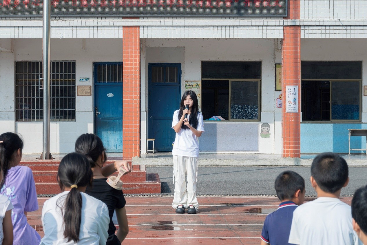 上午時(shí)段,開營(yíng)儀式按流程進(jìn)行。石珺主持開營(yíng)儀式,志愿者依次進(jìn)行自我介紹,展示團(tuán)隊(duì)風(fēng)貌與服務(wù)熱情;校方校長(zhǎng)出席并講話,對(duì)支教隊(duì)表示歡迎,強(qiáng)調(diào)活動(dòng)對(duì)學(xué)生成長(zhǎng)的意義,鼓勵(lì)師生珍惜互動(dòng)機(jī)會(huì)。隨后,為促進(jìn)學(xué)生快速融入,李秉澤帶領(lǐng)一營(yíng)學(xué)生開展“大風(fēng)吹”等破冰活動(dòng),其余志愿者分組引導(dǎo),有效消除陌生感,營(yíng)造積極氛圍。