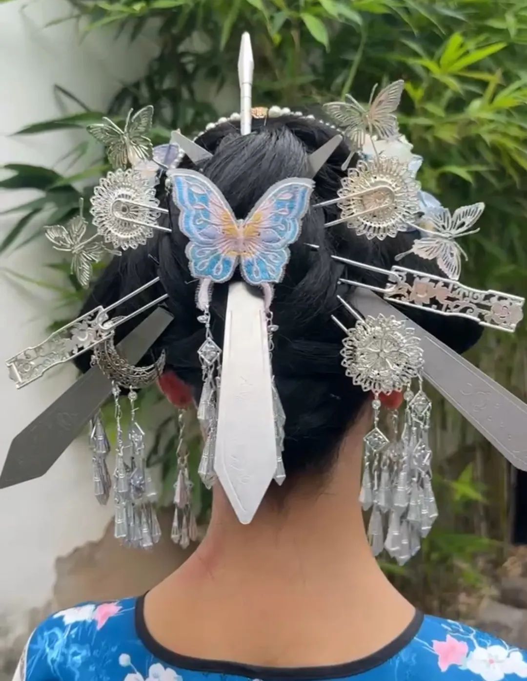 尋簪溯源:徜徉三坊七巷,觸摸千年簪文化脈絡在古巷的三條簪文化體驗店,隊員們沉浸式體驗了傳統妝造。店里有三位師傅給隊員進行三條簪妝造,資深匠人李師傅介紹,“大家細看這三支簪子,造型各有深意:頭簪扁平如刀,二簪纖細如針,三簪彎曲如月。它們不僅是固定發髻的工具,更藏著深層寓意 —— 第一支代表對家國的擔當,第二支聯結家庭的溫情,第三支象征堅守自我的風骨。”三支簪子造型各異,分別象征著家國擔當、家庭溫情與自我風骨,是福州女性精神的縮影。