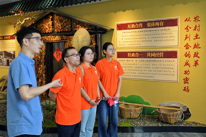 (圖2成員在西湖潭村黨建展廳學習當地土地改革工作機制)
