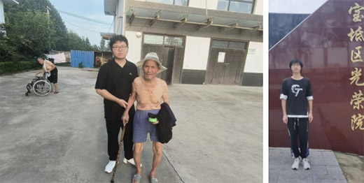 在他們正準備前往張奶奶的房間打掃衛生時,路上遇到了一位推著輪椅的劉爺爺。對于幫助老人青衿尋脈團的各位一向是義不容辭的。很快,仝同學,便主動請纓要去幫忙劉爺爺一起搬送。