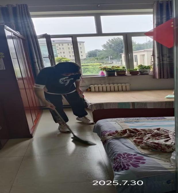 房間是兩人間,但是只有一位老人在住。護(hù)理人員跟老人說了說情況后,被推出去曬太陽了。趁此,我去掃了掃地,擦了擦窗戶,將屋子大致收拾一遍。其實(shí)屋里很干凈,這里的護(hù)理每天都會(huì)來打掃,我想著與其做一些表面上的工作不如去陪著老人們聊聊天可能更好一些。于是我將房間打掃得差不多就出去找那位老人閑聊了。