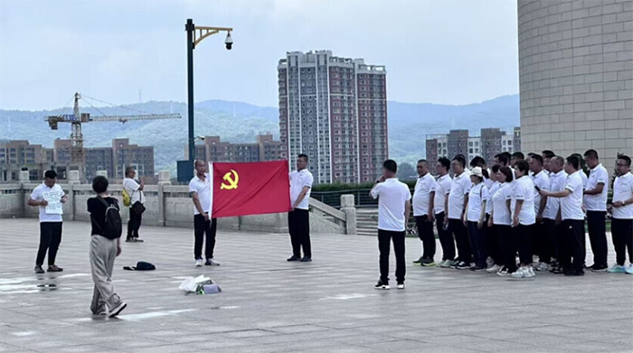 參觀臨近結(jié)束,隊(duì)伍回到抗美援朝紀(jì)念碑廣場,正中央鮮紅的黨旗突然映入眼簾——一群身著白襯衫的年輕人整齊排列成方形,面對黨旗、肅然端正,聲音鏗鏘:“我志愿加入中國共產(chǎn)黨……”風(fēng)把誓詞一句句送到耳邊,也吹紅了隊(duì)員們的眼眶。