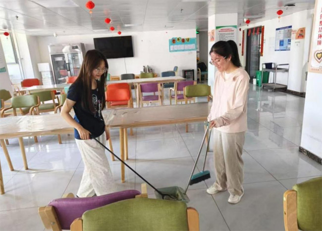 最后一天實踐成員們清掃敬老院,手持掃帚清掃院落與走廊,細致清理角落灰塵,讓地面潔凈如新,為老人營造清爽居住環境。用實際行動傳遞社會對老人生活品質的重視。