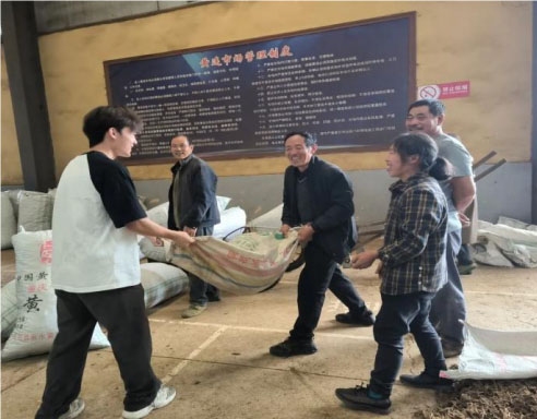圖為團隊成員在工作人員指導下參與黃連篩選環節