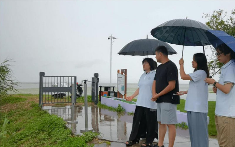 作為太湖鳥類生物多樣性的集聚區和示范區,水映長灘內除了有獨特的水上森林景觀外,同時還是白鷺、鵜鶘、鴛鴦等多種國家、省級保護鳥類的棲息地。蘇州市金庭集團有限公司項目部經理朱曉飛為團隊成員講解該項目在太湖水質動態監測、生物多樣性保護等方面發揮的重要作用,同時也為團隊成員介紹項目在建設過程中所面臨的困難,團隊成員在調研中深刻的感受到科技在生態建設中發揮的巨大作用。