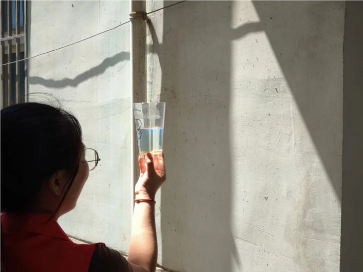 實踐團成員為村民展示中藥材——秦皮的水試 左柯 拍攝