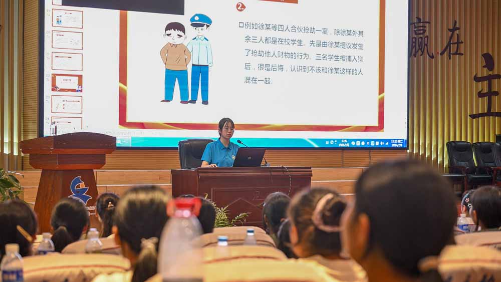 在江姐小學的宣講活動中,教育內(nèi)容主要圍繞憲法、刑法及未成年人保護法三大法律領域展開。實踐團隊精心設計了易于理解的宣講材料,以確保小學生們能夠充分理解法律知識。宣講者首先介紹了憲法作為國家根本大法的地位和作用,并通過分析貼近學生生活的案例(如盜竊、欺詐等),讓學生認識到遵守法律的重要性及其違法行為可能帶來的后果。此外,還探討了家庭、學校和社會在保護未成年人成長方面的責任,以及如何有效預防和處理侵害未成年人權益的行為,從而增強了學生的自我保護意識。