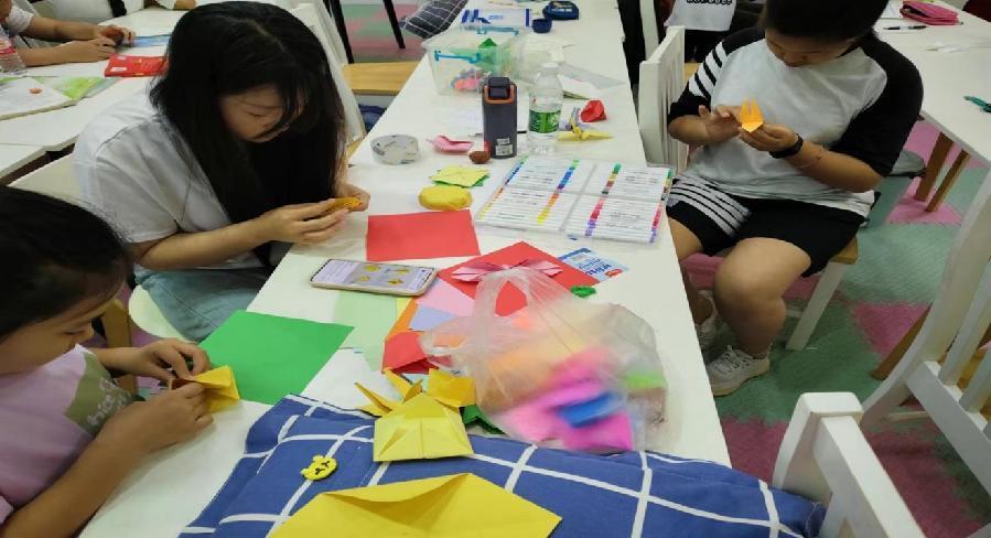 圖為筑夢人志愿團隊隊員帶領孩子們剪紙做手工。通訊員 楊瑞雪 攝