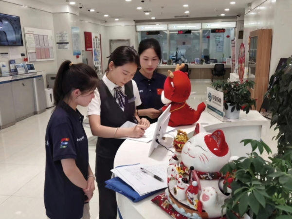 團(tuán)隊(duì)成員在銀行進(jìn)行社會(huì)調(diào)研 胡宜浩攝