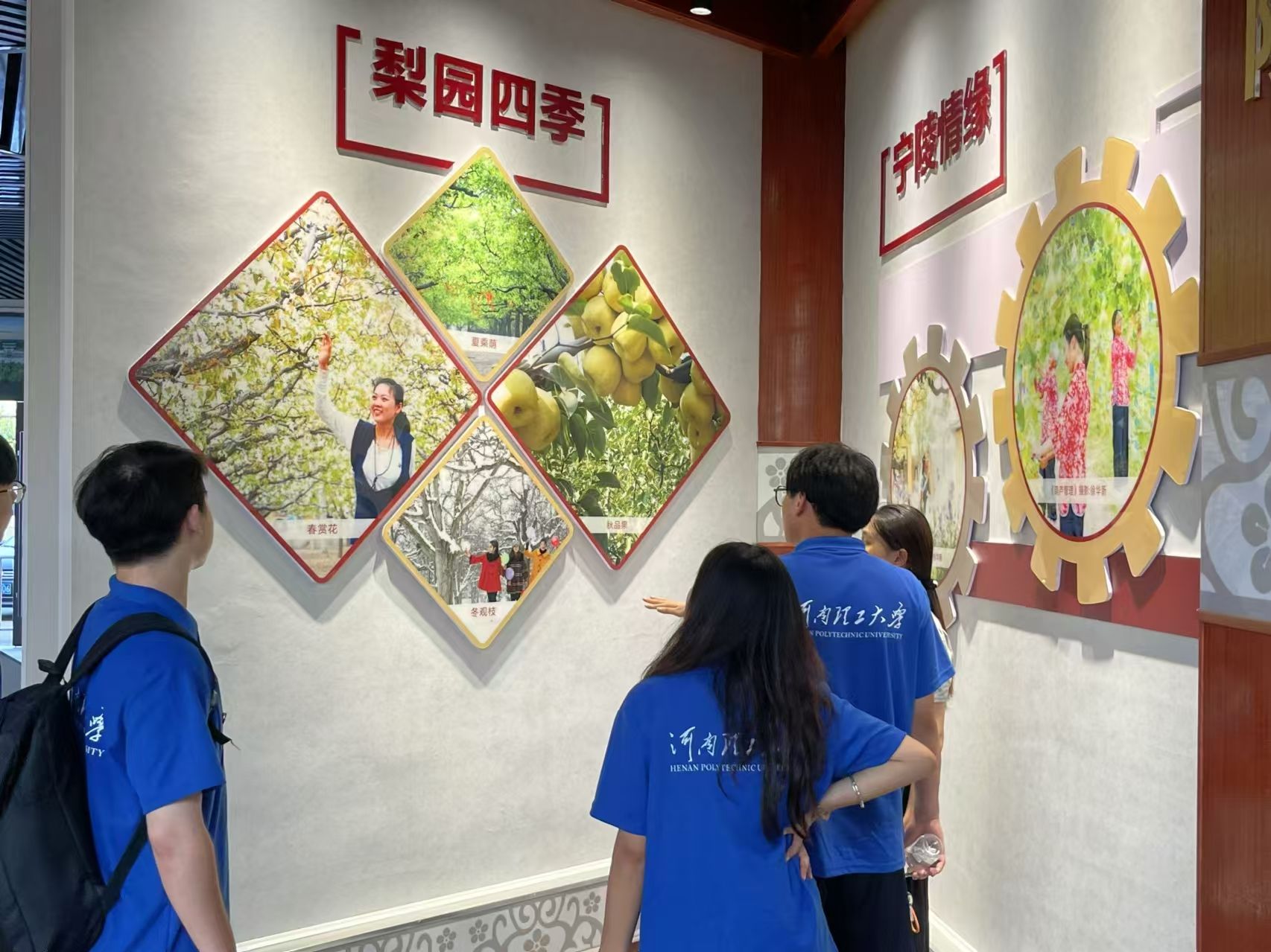 金鼎閣內(nèi),琳瑯滿(mǎn)目的展品讓人目不暇接。從古老的農(nóng)具到現(xiàn)代的農(nóng)業(yè)技術(shù),從寧陵酥梨的種植歷史到其在國(guó)內(nèi)外的影響力,每一件展品都講述著寧陵酥梨產(chǎn)業(yè)的發(fā)展故事。團(tuán)隊(duì)成員們?cè)趨⒂^中了解到,寧陵酥梨的種植歷史可以追溯到宋朝,歷經(jīng)數(shù)百年的演變,其品種和種植技術(shù)不斷優(yōu)化,形成了今天獨(dú)具特色的寧陵酥梨。