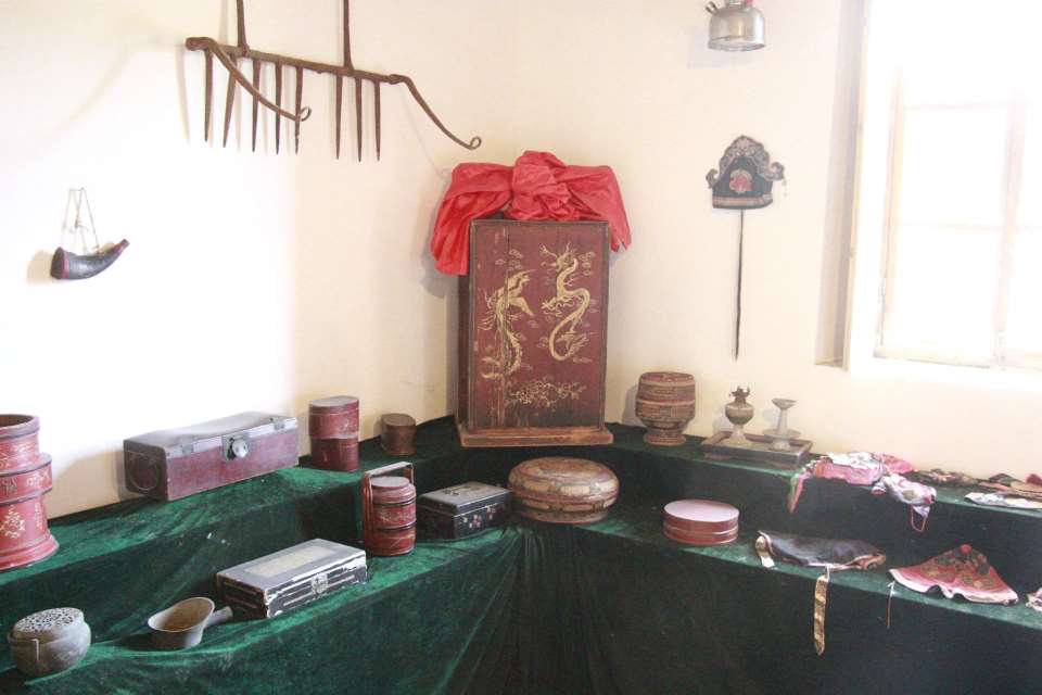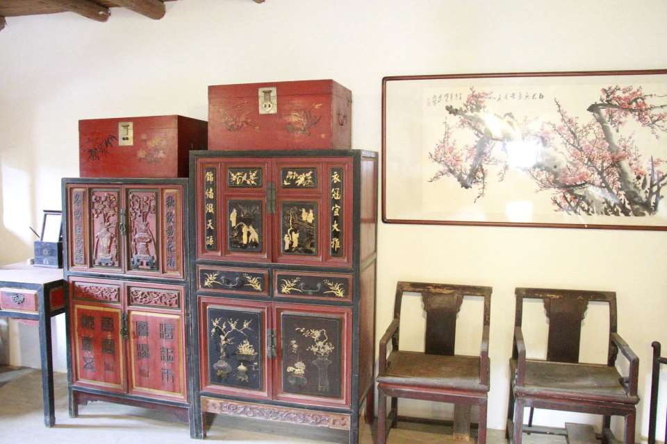 隨后,一行人移步至農耕民俗陳列室,這里仿佛是一個微縮的民俗博物館,梳妝臺、雕花木床等傳統物件靜靜陳列,其上精美的圖案仿佛在訴說著往昔的生活場景與民俗風情。通過村支書邱鳴發的細致介紹,隊員們不僅學習到了爐溪村的嫁娶習俗,更深刻體會到了這片土地上深厚的文化底蘊與生生不息的生命力。