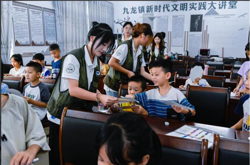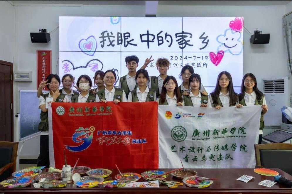 青衿之志,履踐致遠。為深入學習習近平新時代中國特色社會主義思想和領悟黨的二十大精神的深刻內涵,進一步貫徹落實“以美育人,以美化人,以美培元”的教育理念,通過藝術的形式培養學生的審美情趣和創造力,更好地助力鄉村美育教育發展,弘揚中國美育精神。2024年7月19日,廣州新華學院青云志突擊隊(以下簡稱“突擊隊”)借助廣東省“百千萬工程”搭建的暑假三下鄉社會實踐平臺,前往廣東省清遠市英德市九龍鎮新時代文明實踐所開展“我眼中的家鄉”的公益美育實踐活動。
