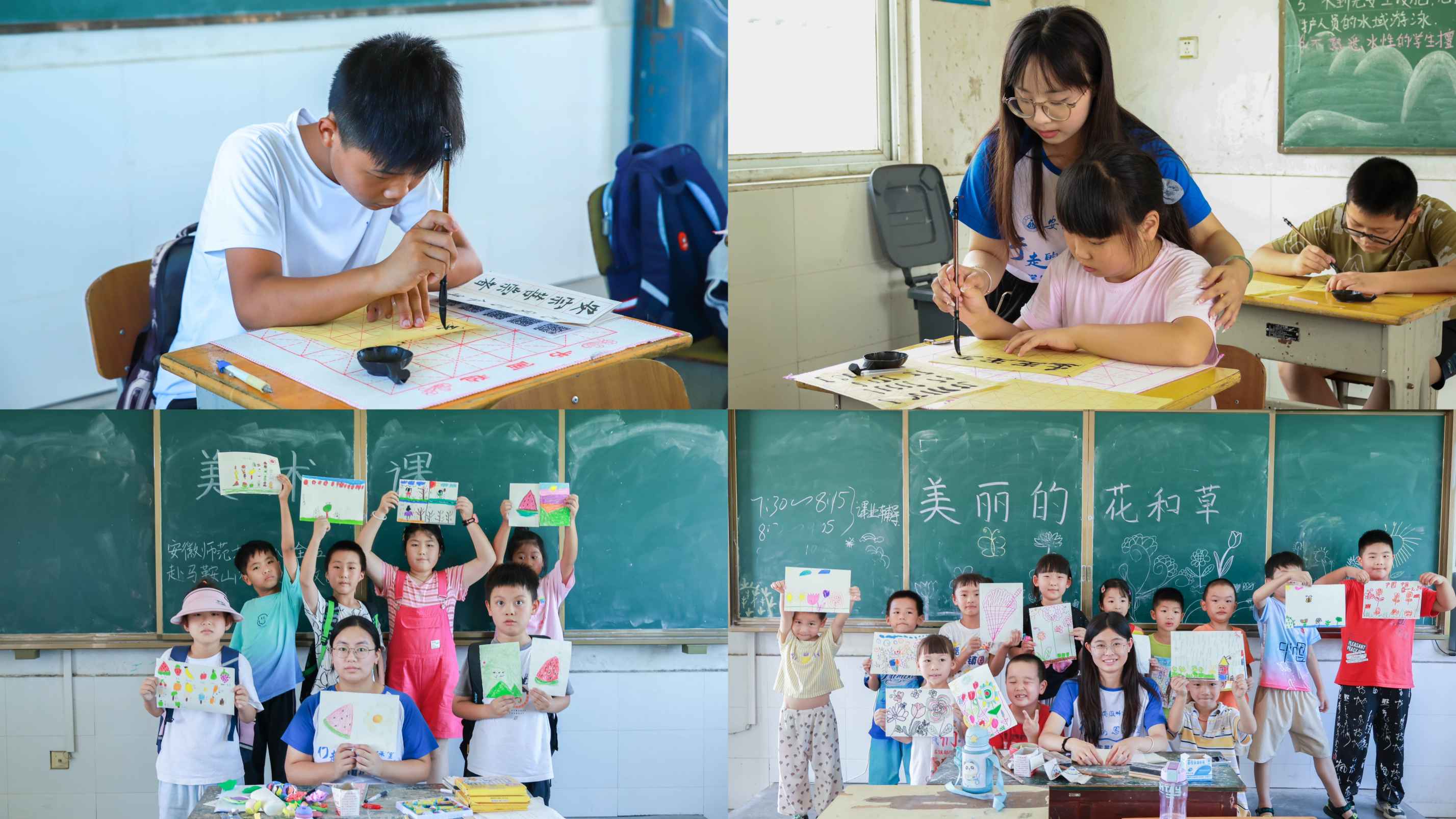 毛筆點墨寫盡世間溫柔,畫筆輕舞繪就支教藍圖。為傳承中華書藝之美,提升學生們的藝術素養,激發孩子們對傳統文化的興趣和熱愛,拓展學生們的思維,實踐團隊開展系列書法課程和日常美術課程,該類課程依托小學教育的專業優勢融合先進教育理念,為學生們設計了寓教于樂的書法和繪畫啟蒙課程,在傳統課堂講授的基礎上,結合實踐操作幫助同學們更快掌握所學內容。課堂上老師認真講解積極與學生們互動,學生們通過不斷練習逐漸掌握書法和繪畫技能。課程使學生們靜下心來感悟中華傳統文化的魅力,培養學生良好的審美情趣,陶情養性,磨礪意志品質促進學生全面健康發展。