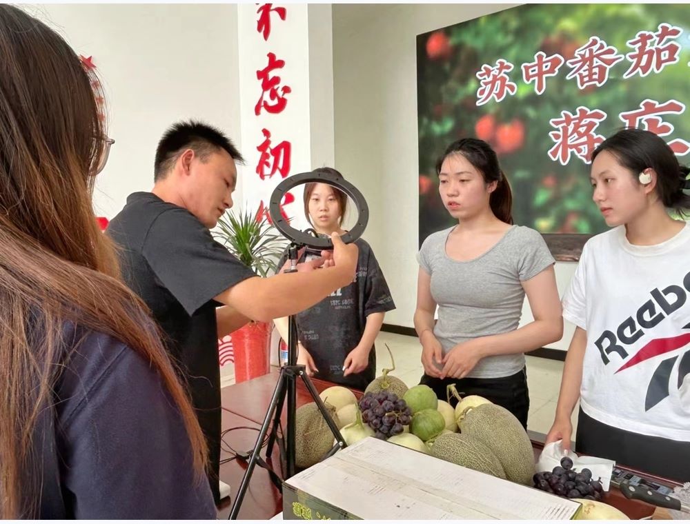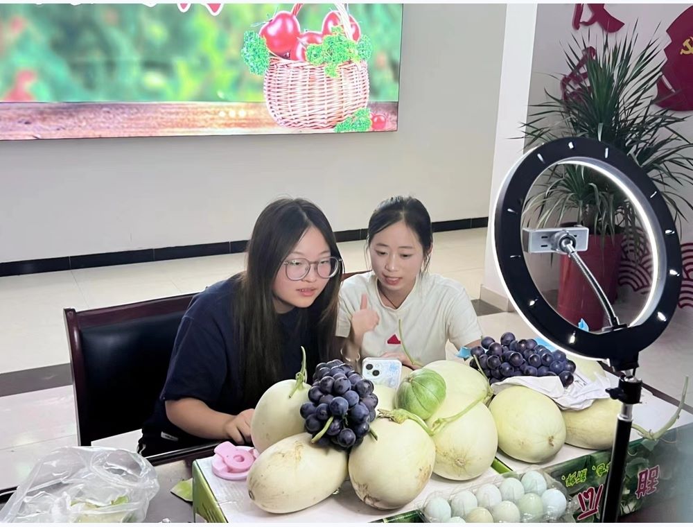 圖為團隊成員助農直播帶貨。中國青年網通訊員 戴心琰 攝