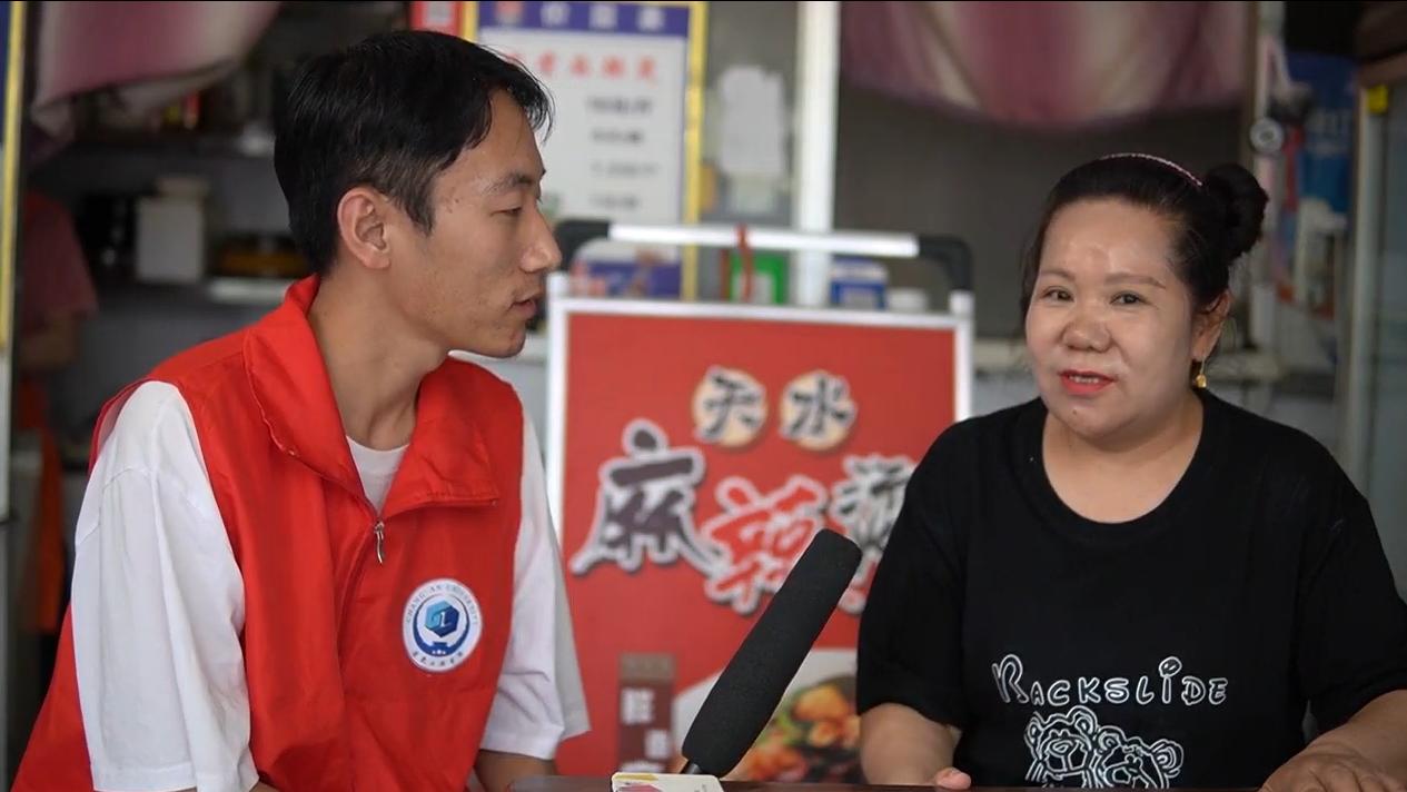 實踐隊員白陽首先來到遠英麻辣燙,對店主楊師傅進行采訪。楊師傅首先分享了天水麻辣燙成功的秘訣。楊師傅表示這里的麻辣燙價格親民,口味偏麻,且加入了當地特色甘谷辣椒、油潑辣子等調味料,構成了當地特殊的口味特色。在被問到麻辣燙如何保證品質和衛生標準時,楊師傅表示,他每天早上第一時間采購新鮮蔬菜,反復清洗、切串,并表示食品安全是做餐飲行業的第一要義。那么天水麻辣燙相較其他地方有什么優勢呢?楊師傅表示天水麻辣燙依靠特色手搟粉、洋芋丸子等當地特色食材,以及甘谷辣椒的特有風味而出眾,抓住游客的味蕾。