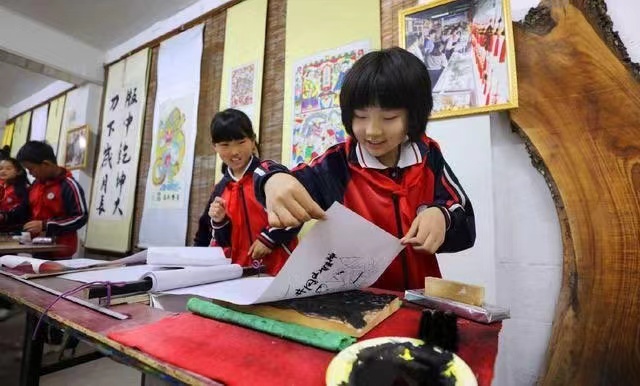 圖為學(xué)生體驗(yàn)?zāi)戤?huà)制作