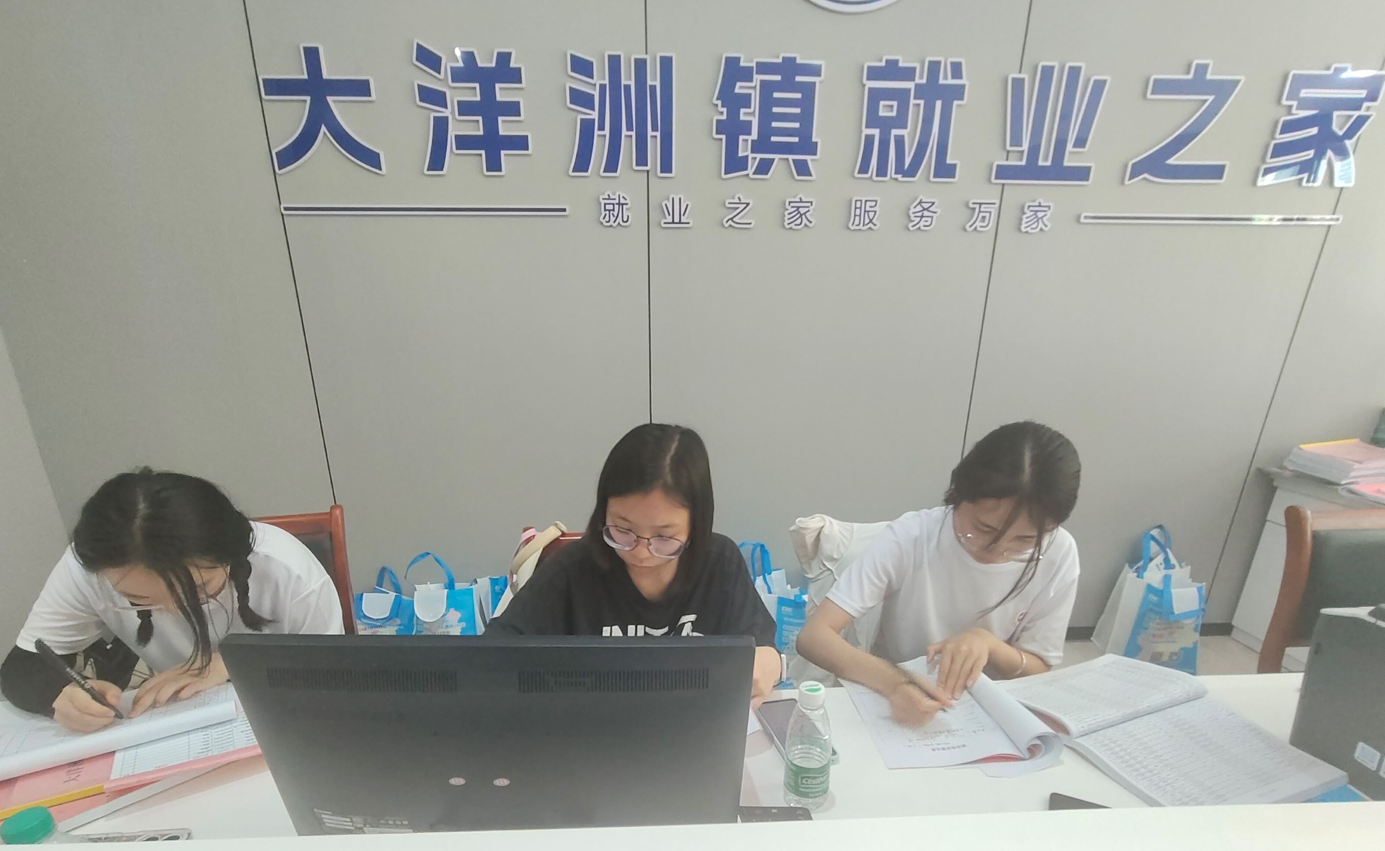 圖為實踐隊員在就業之家工作人員的帶領下體驗就業之家的日常工作。