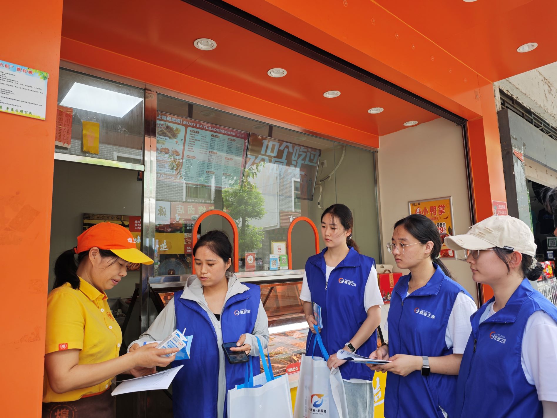 在此次調研的過程中,實踐隊的隊員們還穿上馬甲,陪同社區工作人員一同前往居民的店鋪和家中親身參與了一次宣傳活動。從居民們遠遠就開始的熱情招呼,到工作人員與居民們的熟絡聊天中,隊員們能深刻體會到,這不僅是一場簡單的信息傳遞活動,更是一次心與心的連接,是社區和政府對居民就業問題深切關懷的體現。在與居民的互動中,隊員們觀察到工作人員們十分受居民歡迎,同時,他們也能夠清楚記得之前居民們所提出的需求,特意帶來相關的新信息,并詳細講解一些注意事項和耐心地回答居民的疑惑及問題。這樣的場景,在社區的每個角落都會時常在上演。居民們紛紛表示,這樣就業宣傳活動不僅讓他們了解到了更多的就業信息和機會,更讓他們感受到了來自社區和政府的關心和支持。