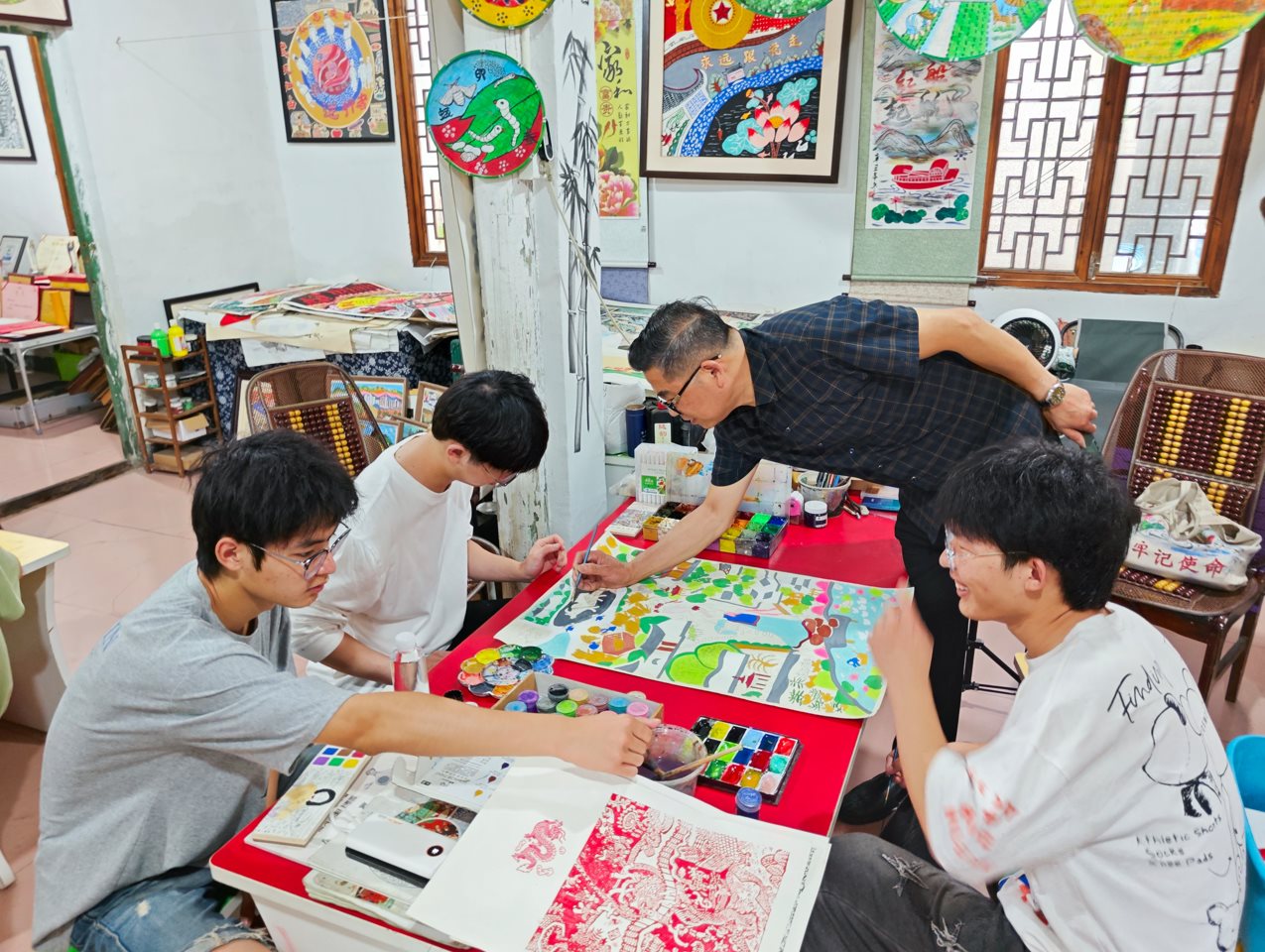 在毛老師的指導(dǎo)下,我們也體驗(yàn)了農(nóng)民畫的繪制,真真切切地感受到它的魅力。如今,隨著時(shí)代的變遷和社會(huì)的進(jìn)步,農(nóng)民畫也在不斷地傳承與創(chuàng)新中煥發(fā)出新的生機(jī)。毛根甫老師用自己的方式詮釋著農(nóng)民畫的新時(shí)代內(nèi)涵。同時(shí),農(nóng)民畫也逐漸走出鄉(xiāng)村,走向世界舞臺(tái),成為連接不同文化和情感的橋梁。