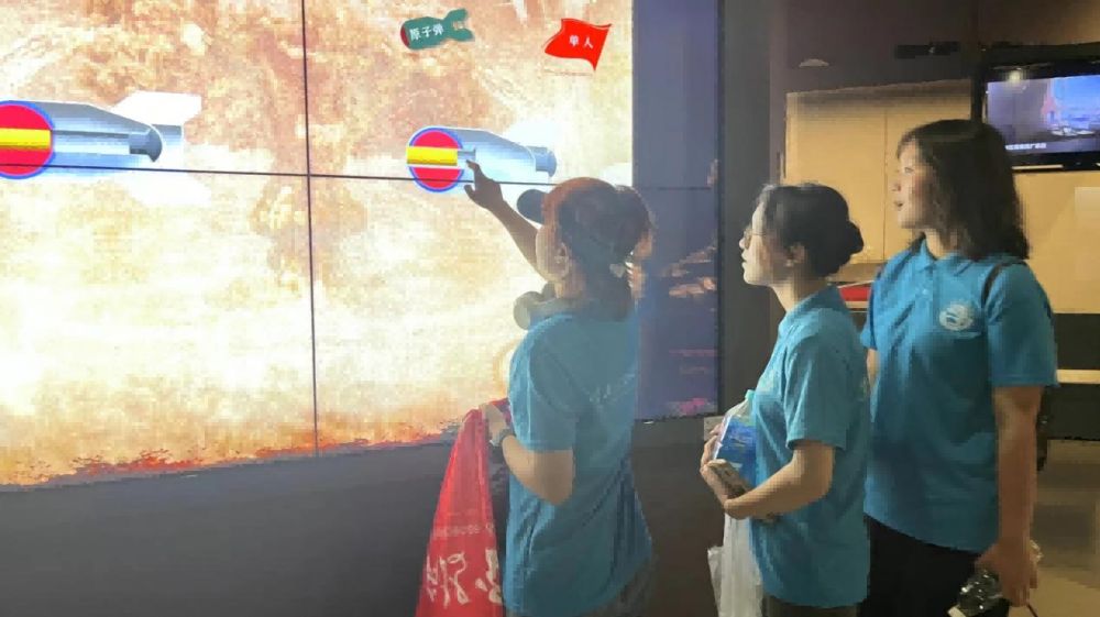 (圖為實踐團成員體驗陳列館內互動觸摸屏)