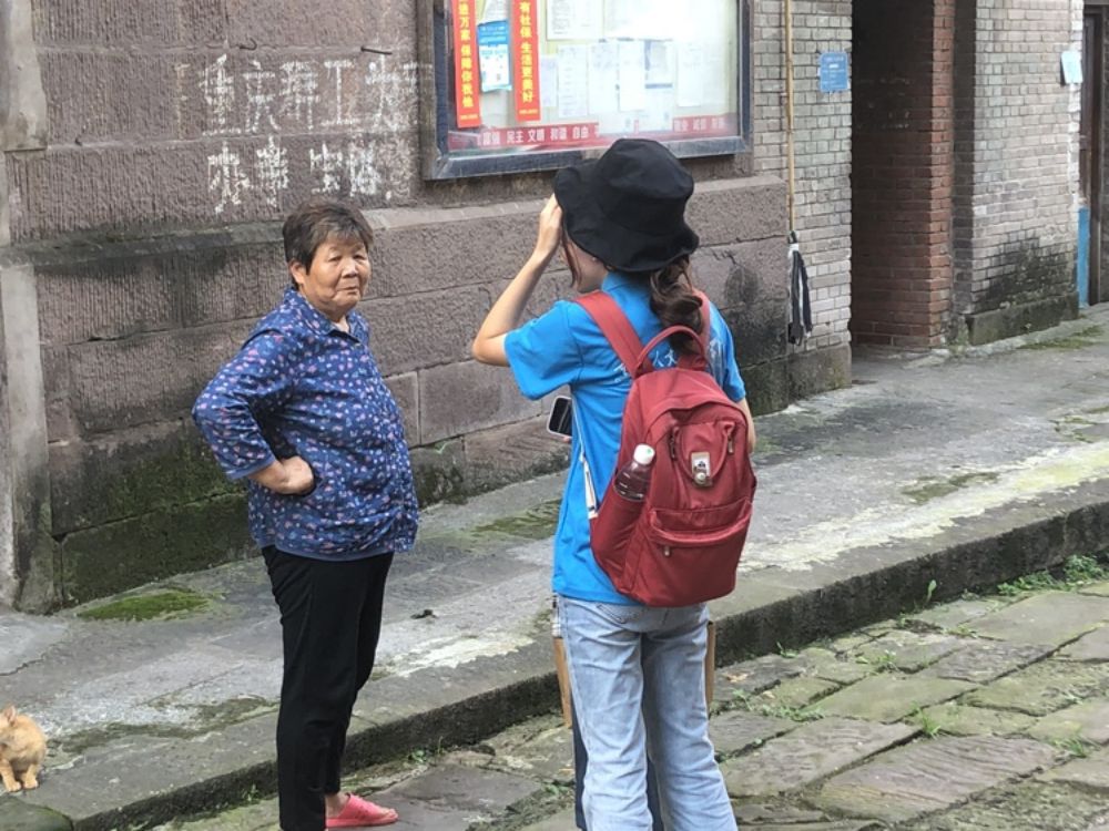 (圖為實踐團成員向當地居民了解古鎮情況)