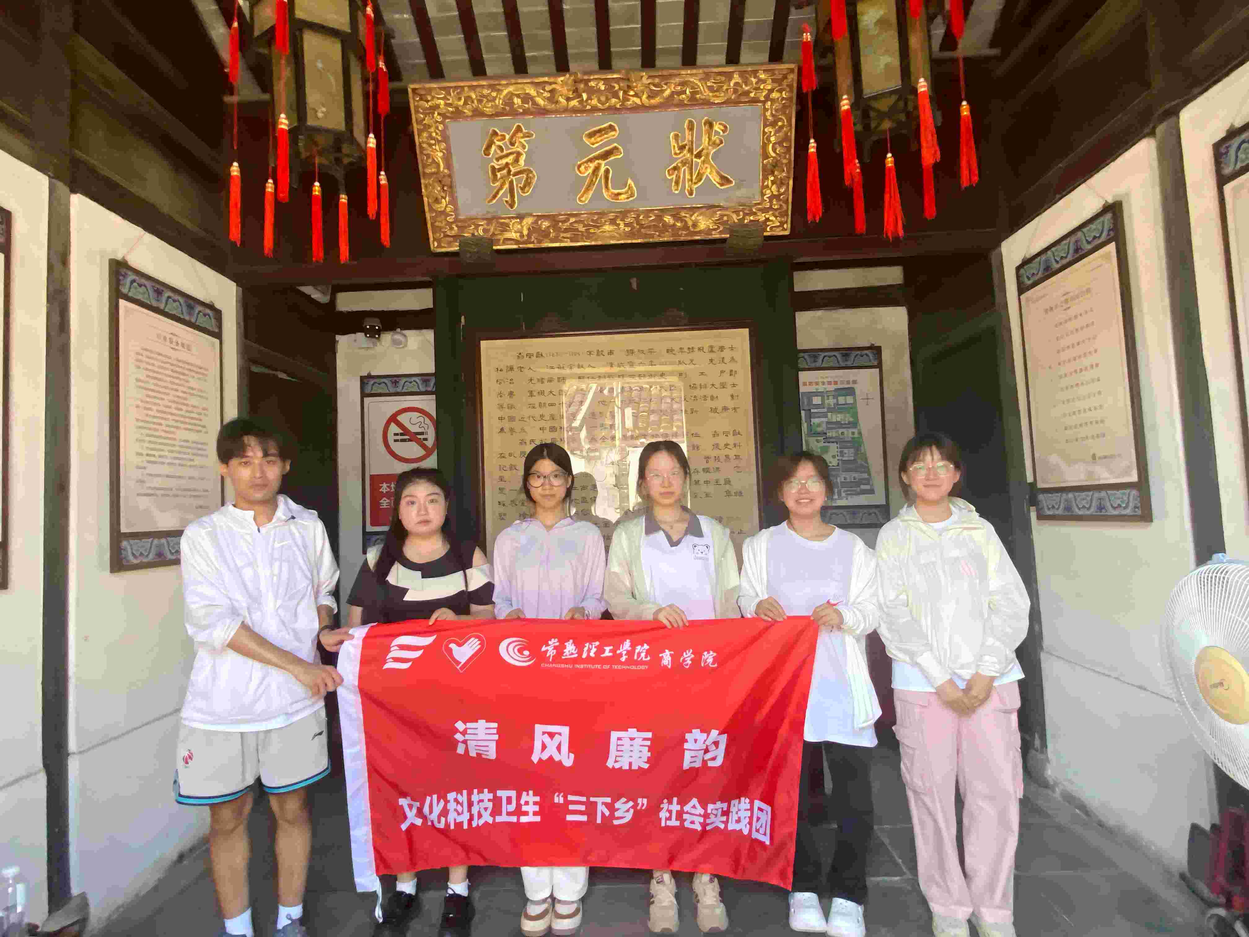 圖為團(tuán)隊(duì)成員在翁同龢紀(jì)念館前合影留念。中國青年通訊員 張玉文 攝