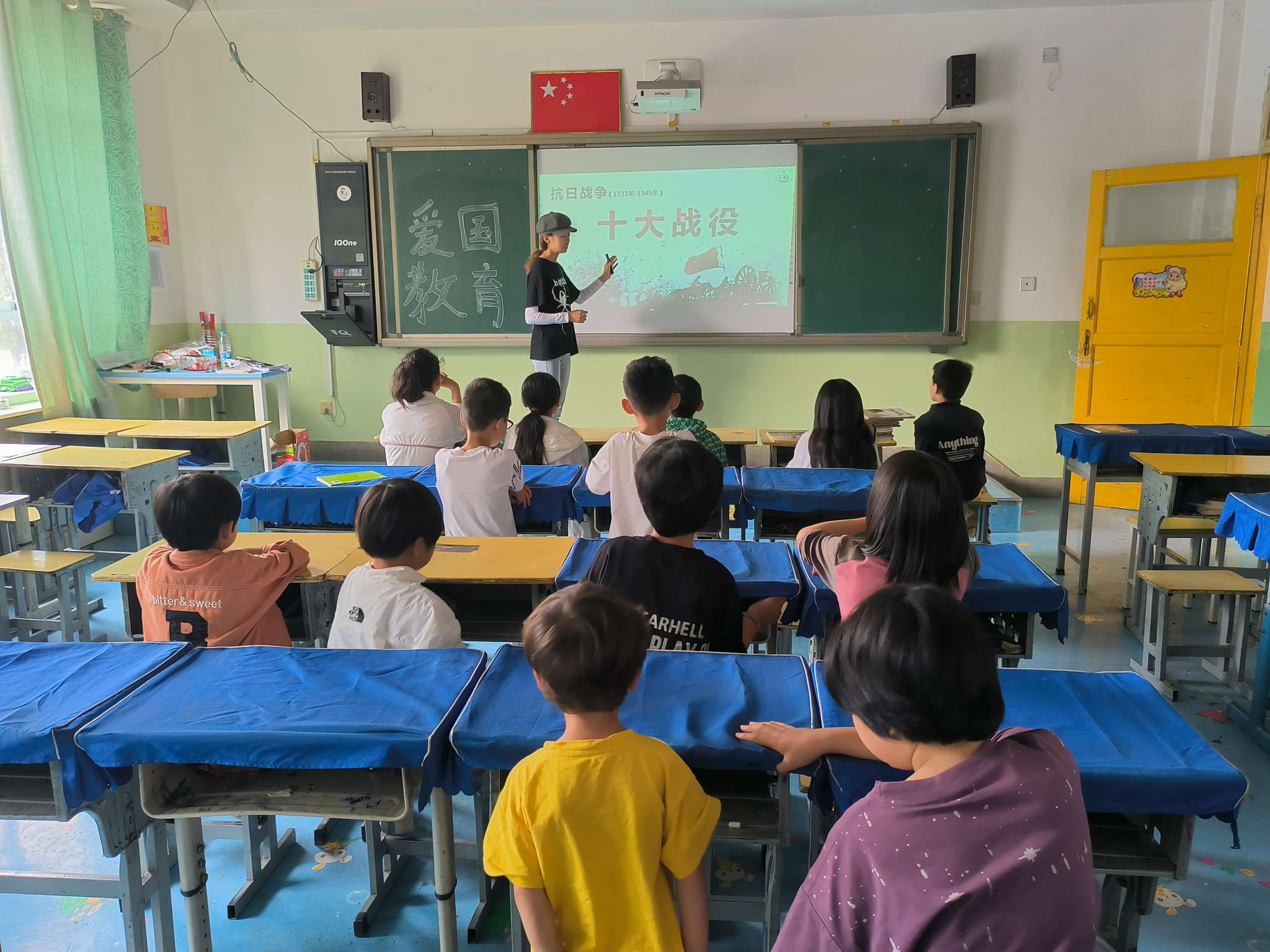 在愛國教育主題中,團隊成員帶同學們簡要講解了抗日戰爭、抗美援朝戰爭以及九一八事變,通過回顧歷史的方式,讓同學們更加設身處地地聯想起當時中國的國情,進一步增強同學們的愛國主義情感,提高他們對紅色文化的認同感與責任感,培養革命精神。