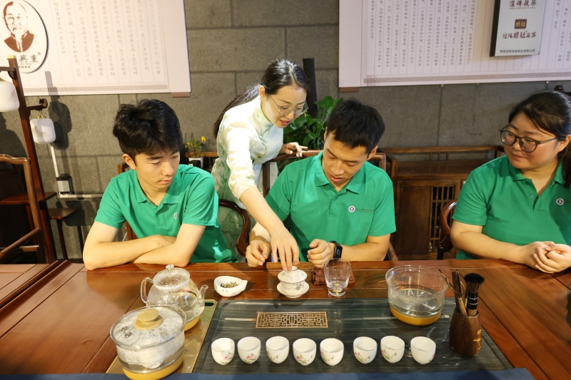 學(xué)習(xí)和了解了茯茶的相關(guān)歷史和知識(shí)后,在茶藝師的指導(dǎo)下,實(shí)踐團(tuán)成員們紛紛拿起茶具,按照傳統(tǒng)工藝,一步步完成茯茶的沖泡過(guò)程。從溫杯潔具、稱量茶葉到注水沖泡,每一個(gè)環(huán)節(jié)都需細(xì)心操作,方能泡出一杯好茶。實(shí)踐團(tuán)成員趙恒鑫同學(xué)作為主泡代表,分享了自己的實(shí)踐心得:“通過(guò)親手沖泡茯茶,我深刻體會(huì)到了茶文化的博大精深。從茶葉的選取到水溫的控制,再到?jīng)_泡的手法,每一個(gè)細(xì)節(jié)都至關(guān)重要,這讓我更加珍惜這杯來(lái)之不易的茯茶,也讓我感受到了非遺背后的魅力。”