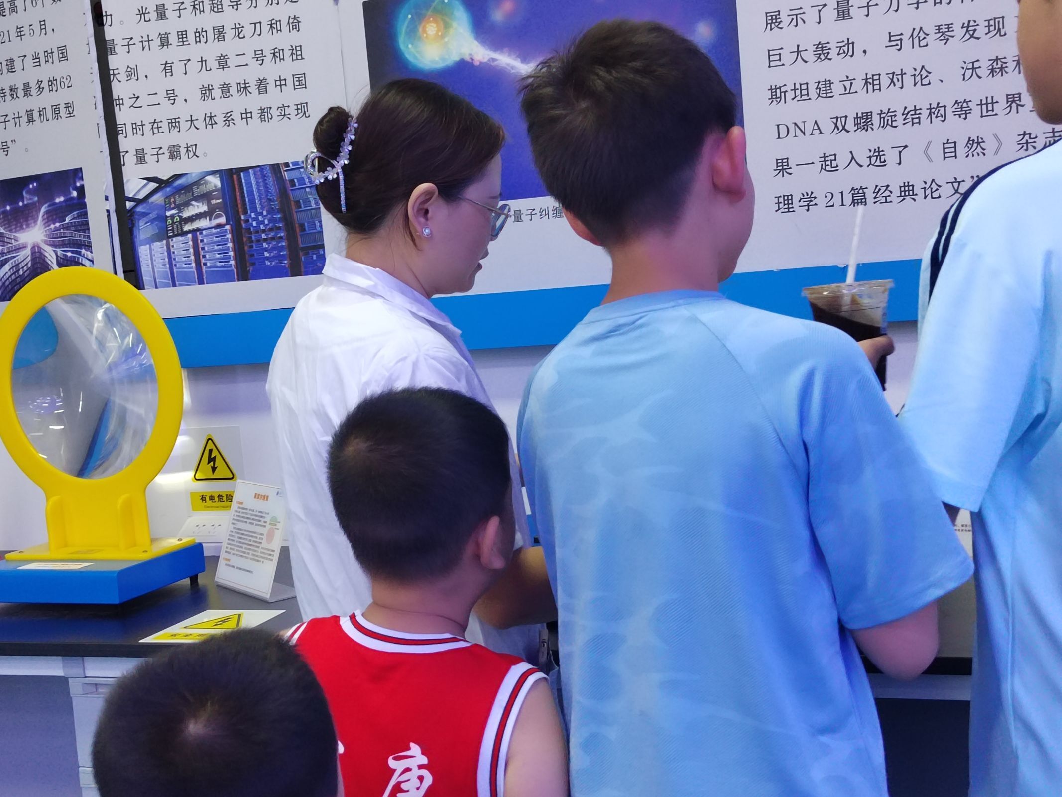 在物理演示實驗室,志愿者們帶領小朋友們一起走進奇妙的科學樂園。小朋友們在志愿者們的講解和手把手的指導下,觀察到了許多奇妙的物理現象。