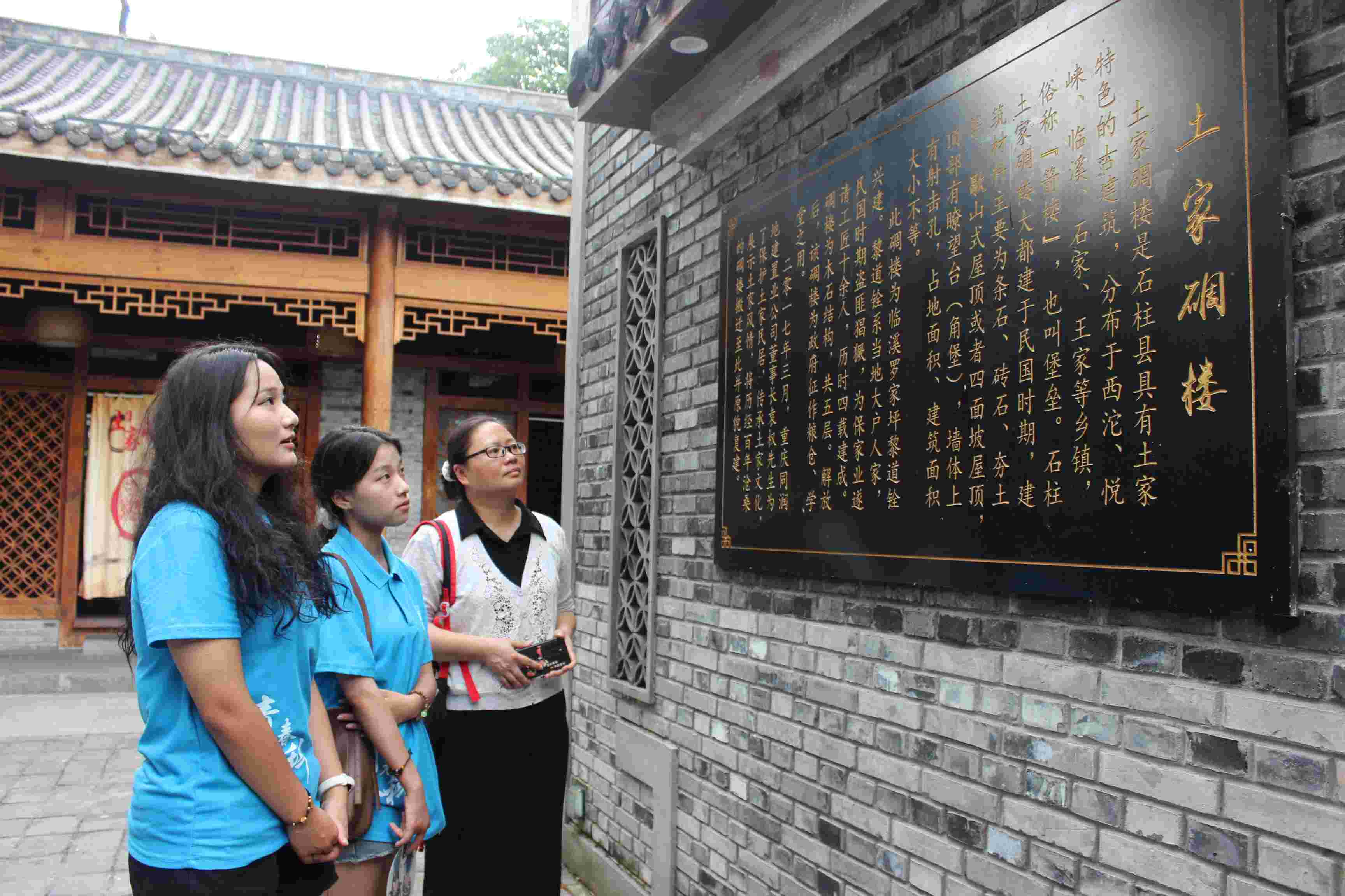 碉樓文化碑前展,文旅方式齊暢談。為抵御敵人,石柱土家碉樓頂部設有瞭望臺,墻體上有射擊孔。實踐團與指導老師一起去到石柱土家碉樓參觀學習,共同探討文旅發展及文化傳承的相關方式方法。