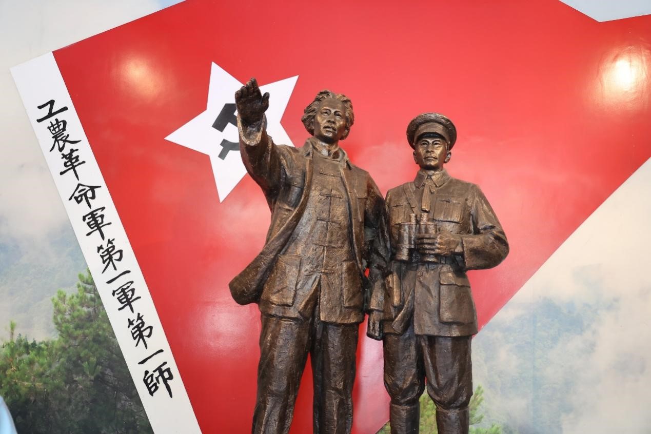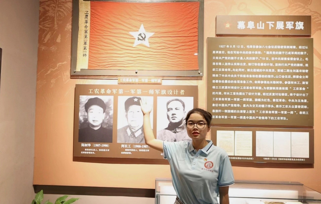 圖為實踐隊員盛文麗向大家講解工農(nóng)革命第一軍第一師軍旗的歷史。 楊雨萱 供圖