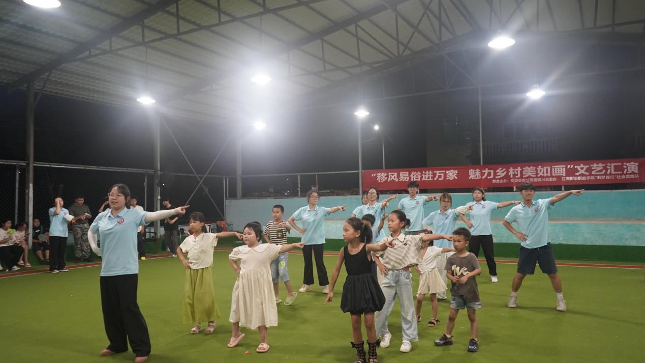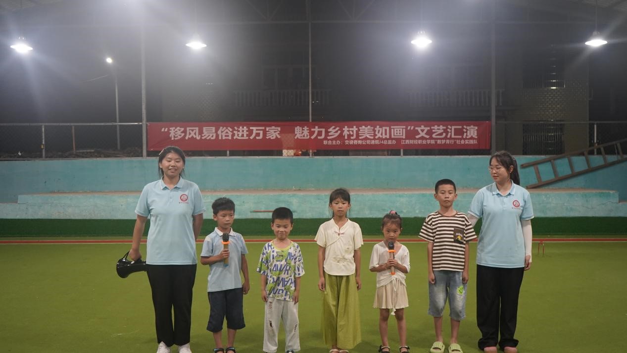 移風易俗,是社會進步的重要標志。它不僅是精神文明建設的關鍵一環,更是推動社會向前發展的重要力量。7月13日晚,江西財經職業學院數字經濟學院的“數夢青行”社會實踐隊攜手江西交設咨詢公司,共同舉辦了一場別開生面的文藝匯演。這次活動以“移風易俗進萬家,魅力鄉村美如畫”為主題,歌舞表演為主要形式,由“青青子衿之懷家國”、“冉冉向新執光開路”和“灼灼風華向陽追夢”三個篇章組成,邀請附近村民和留守兒童共同參與表演。旨在通過豐富多彩的文藝表演,向村民們傳遞移風易俗的理念,激發大家的參與熱情。