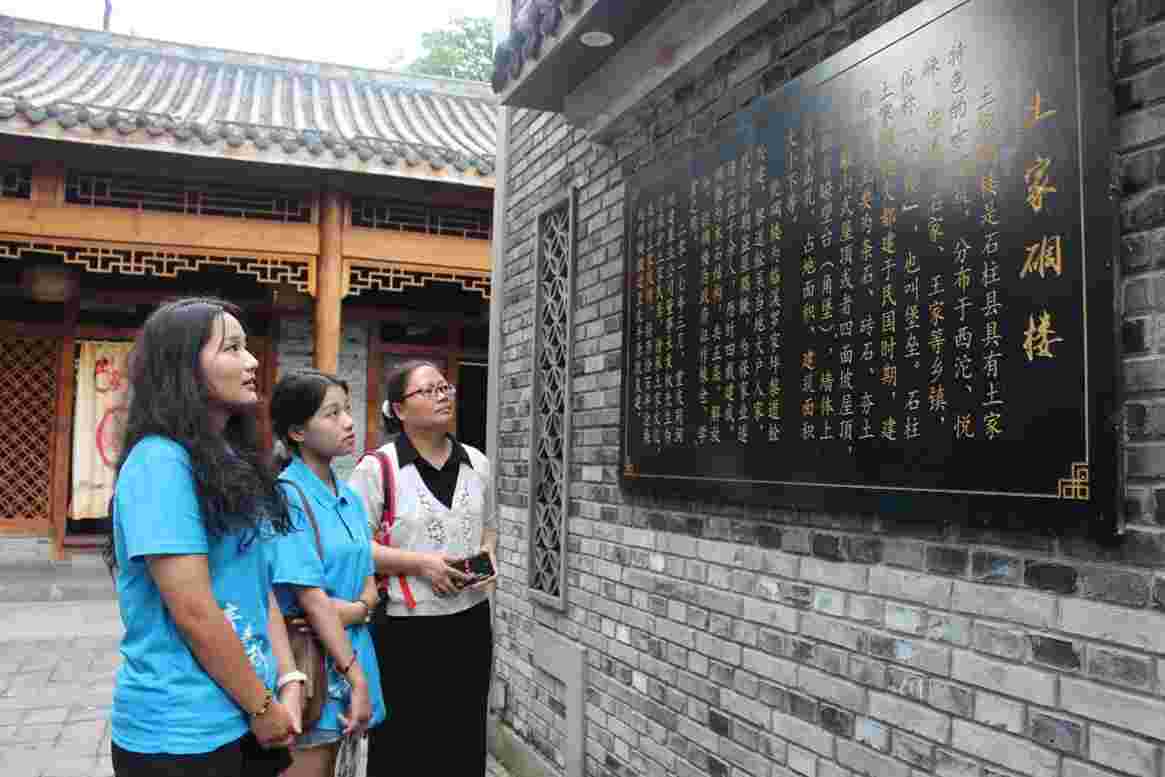 (圖為實(shí)踐團(tuán)指導(dǎo)老師和成員共同學(xué)習(xí)土家碉樓文化)
