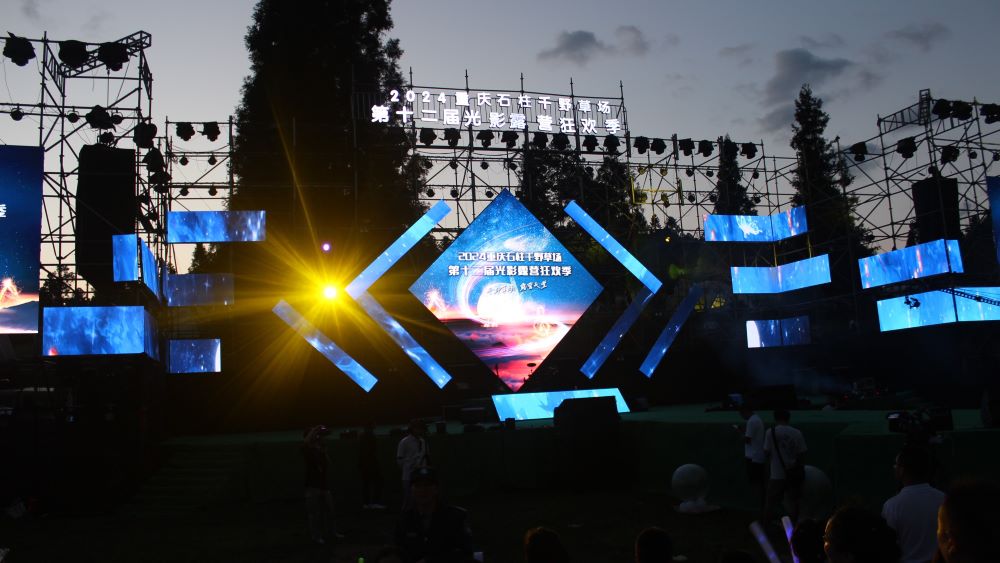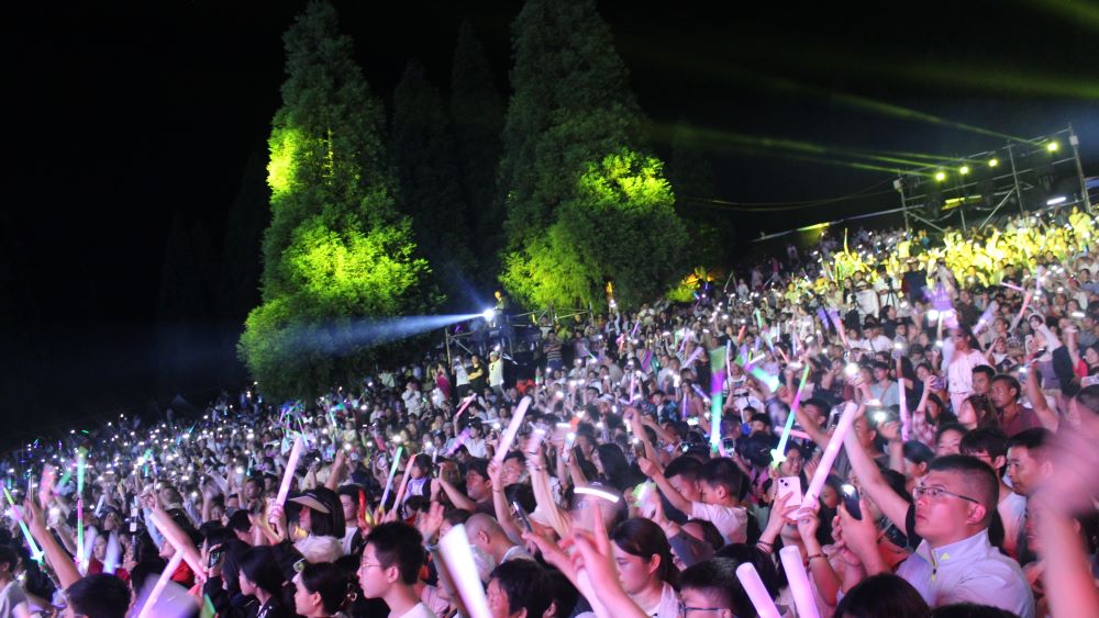 實踐團到石柱縣千野草場,觀賞當地音樂表演,尋找啰兒調宣傳和發展新思路。傍晚時分,千野草場的表演舞臺閃爍著各色的燈光,觀眾揮舞著自己的熒光棒和打開閃光燈的手機,吶喊聲、尖叫聲、鼓點聲、音樂在現場充斥著,實踐團體驗著當地特色的音樂表演,感受著音樂表演的氛圍。