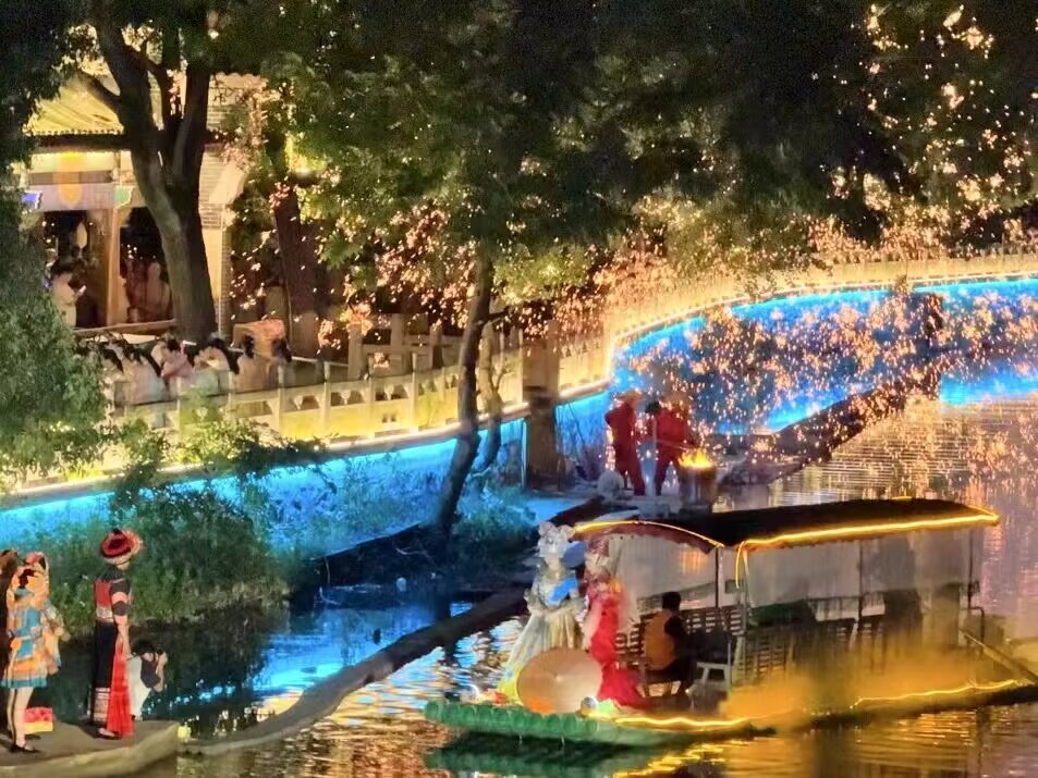 當夜幕降臨,富江河兩岸早早地聚集了翹首以盼的村民。隨著一陣陣鏗鏘有力的敲擊聲響起,打鐵花師傅們開始了精彩絕倫的表演。他們揮舞著熾熱的鐵水,憑借高超的技術和精準的配合,一道道絢麗的鐵花如同流星般劃破夜空,瞬間點亮了整個河面。實踐團成員們全神貫注地觀察著每一個細節,用心記錄下這份難得的文化體驗。