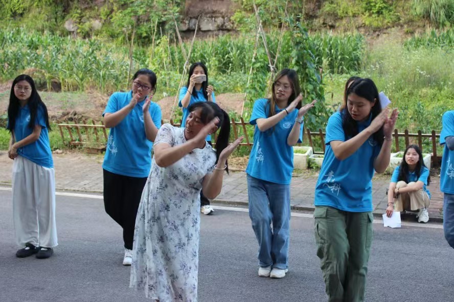 (圖為實踐團跟隨劉長珍老師跳擺手舞 張思怡攝)