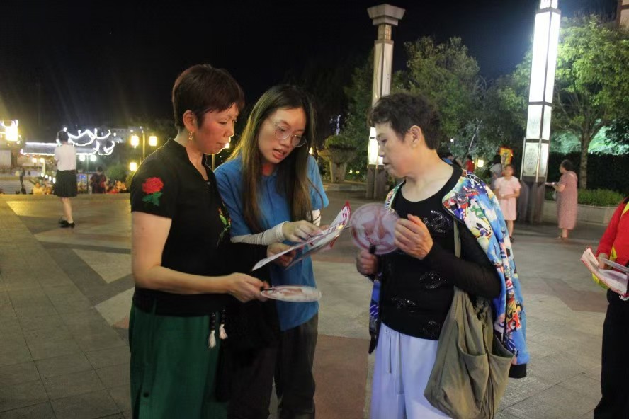 急救攜手啰兒調,街頭宣講入人心。實踐團成員在黃水鎮街頭向社區居民及民眾宣講心肺復蘇急救知識。在宣講過程中,實踐團成員結合宣傳單,以圖文并茂的方式向社區居民及民眾宣傳急救知識,圍繞“急救是保護生命的必備技能,通過普及急救知識,我們可以挽救生命、同時提升個人和社區的整體素質。”實踐團成員針對性地解答民眾的問題,普及心肺復蘇、止血包扎等常規急救方法,通過實踐演示向居民們展示急救措施的具體實施步驟。