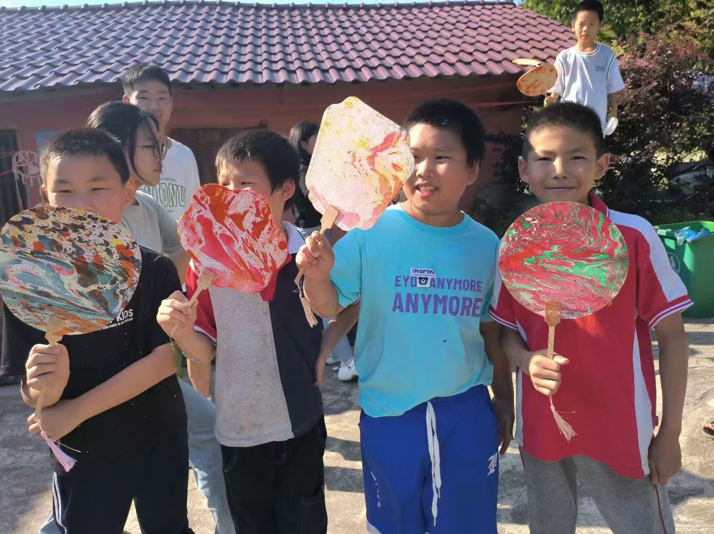 在手工課上,實踐團成員耐心地向孩子們展示如何將天然大漆均勻涂刷在扇骨上,并鼓勵他們用各種色彩繪制心中的美好圖案。這不僅讓孩子們體驗了傳統工藝的魅力,也在他們心中播下了非遺文化傳承的種子。在地理課上,通過有趣的互動游戲和生動形象的科普故事故事,實踐團成員將抽象的地理知識變成了一幅幅鮮活的畫面。孩子們在歡聲笑語中加深了對世界多樣性的理解,激發了探索未知世界的渴望。