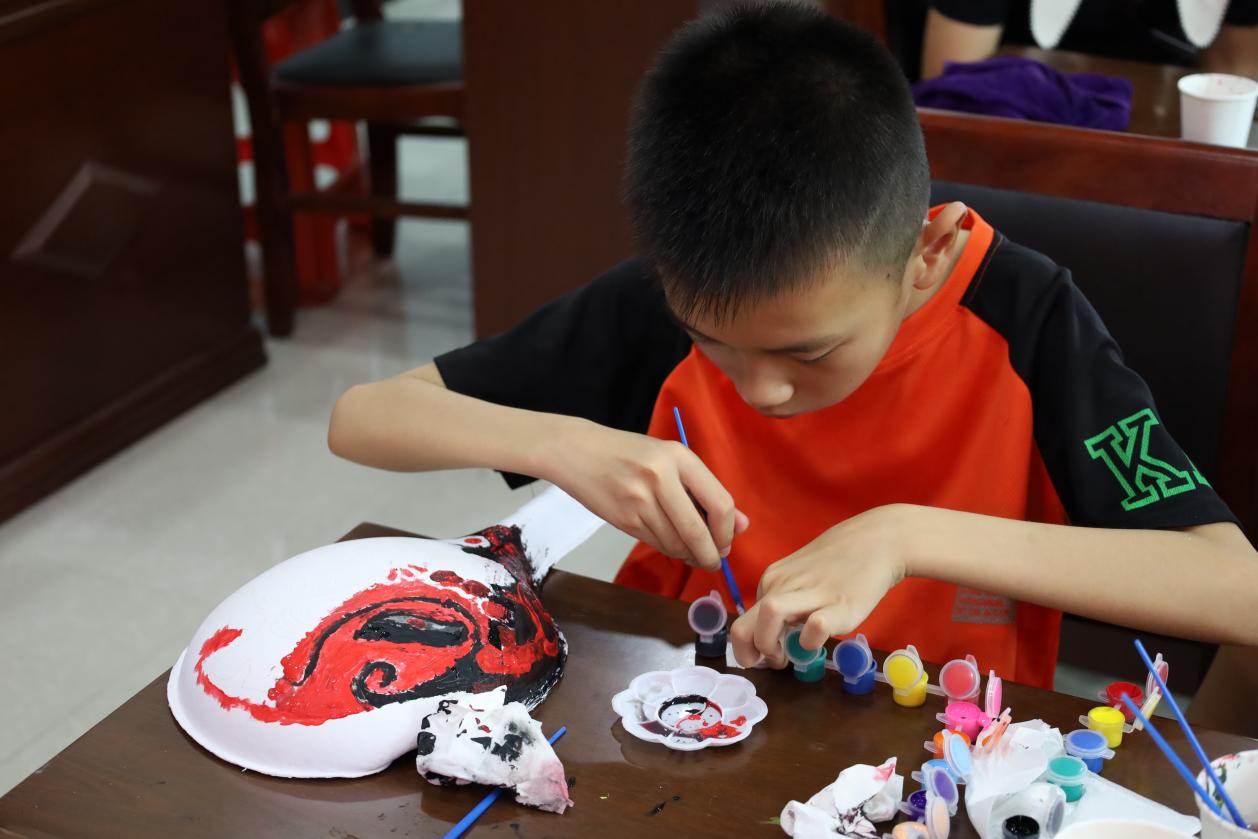 圖為小朋友體驗繪畫臉譜。中國青年網通訊員 冉東靈 供圖