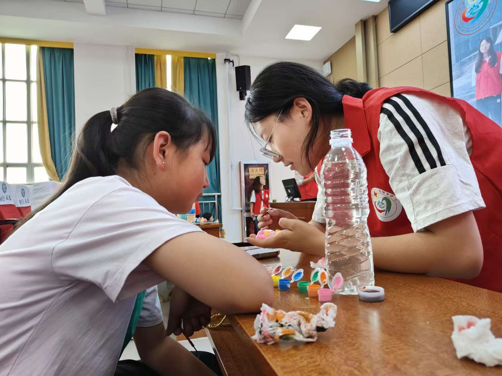 圖為團隊成員指導兒童涂石膏娃娃。中國青年網通訊員樊雪 攝