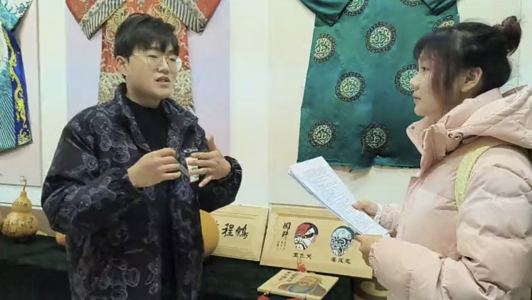 圖為實踐隊員對劇團負責人進行采訪。閆麗萍 供圖