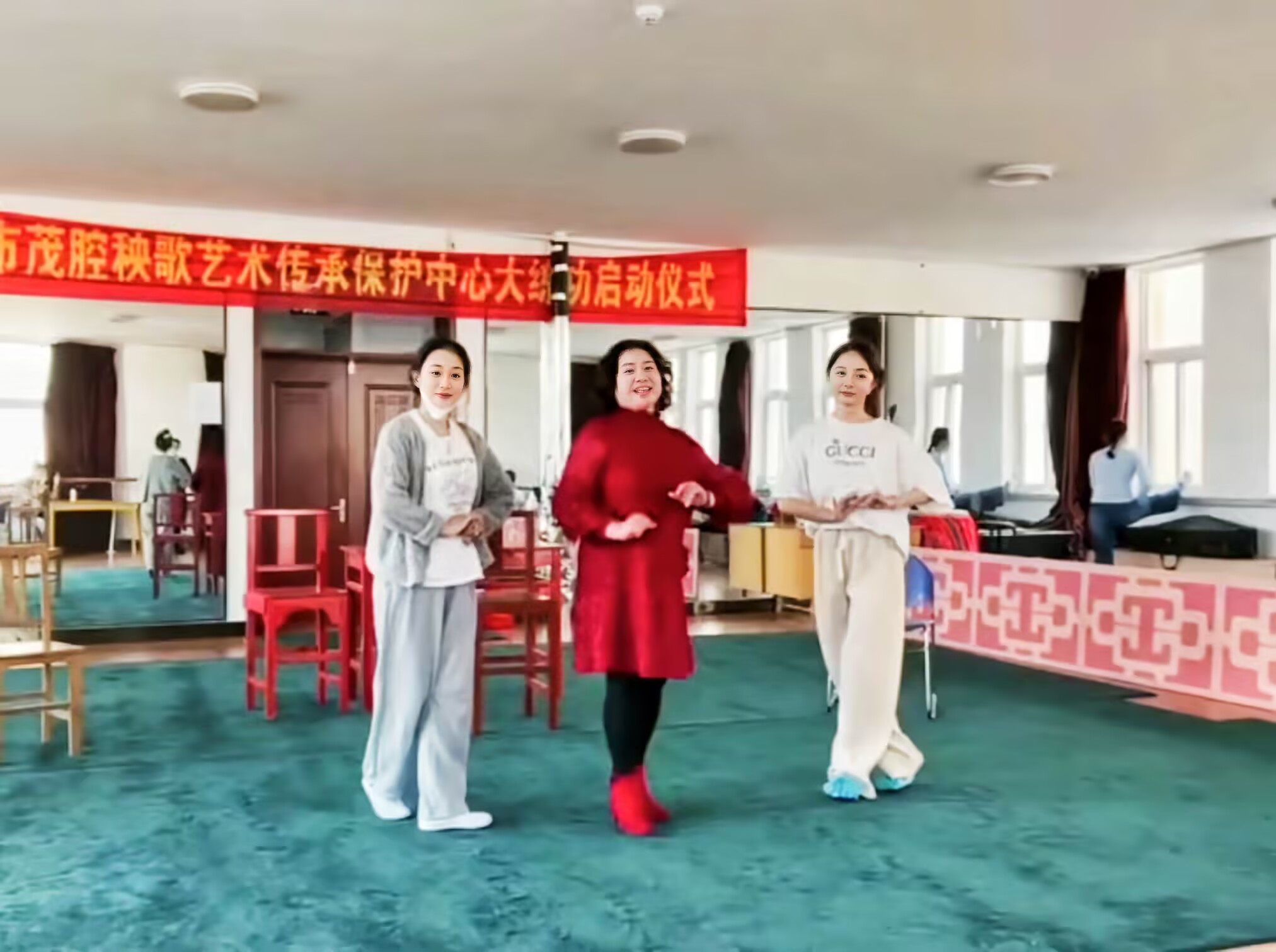 隨后,實踐隊員跟著劇團負責人的腳步,來到了排練室。演員們的一招一式、一顰一笑都展現出對茂腔藝術的專注與熱愛。賢繼紅老師表示,茂腔的表演注重細膩的情感表達和生動的人物塑造,每一個眼神、每一個動作都要能傳達出角色的內心世界。她親自示范,耐心地糾正年輕演員們的動作和唱腔,“茂腔是我們的寶貝,我們要把它原汁原味地傳承下去,還要讓它在新時代煥發出新的活力。”