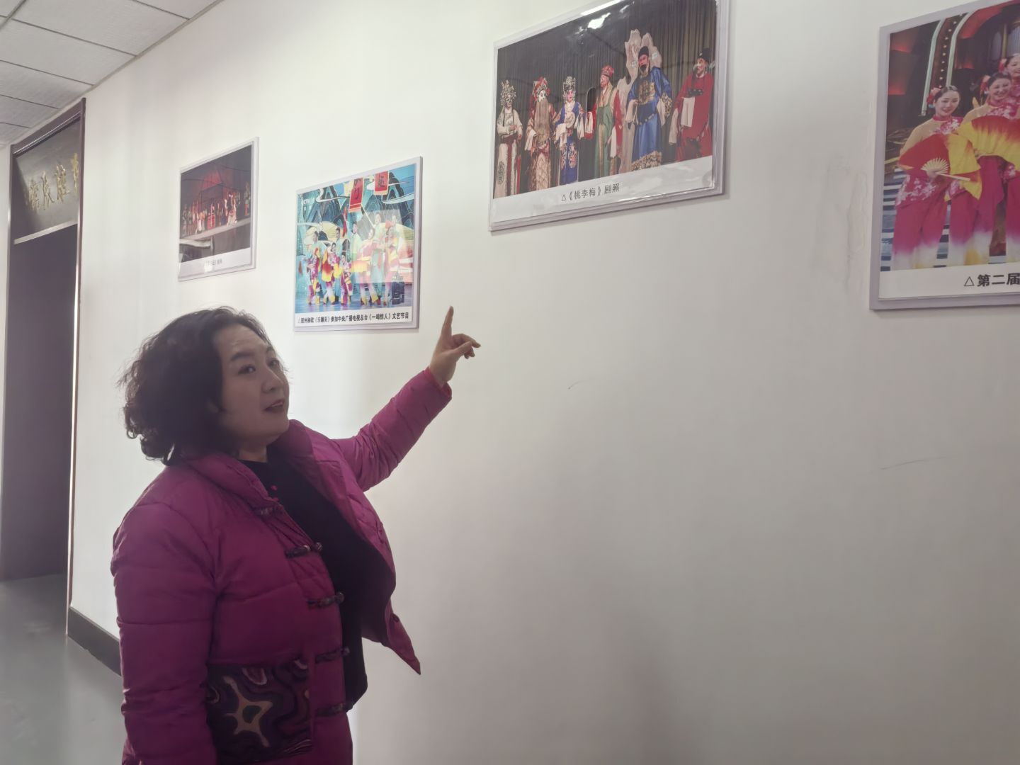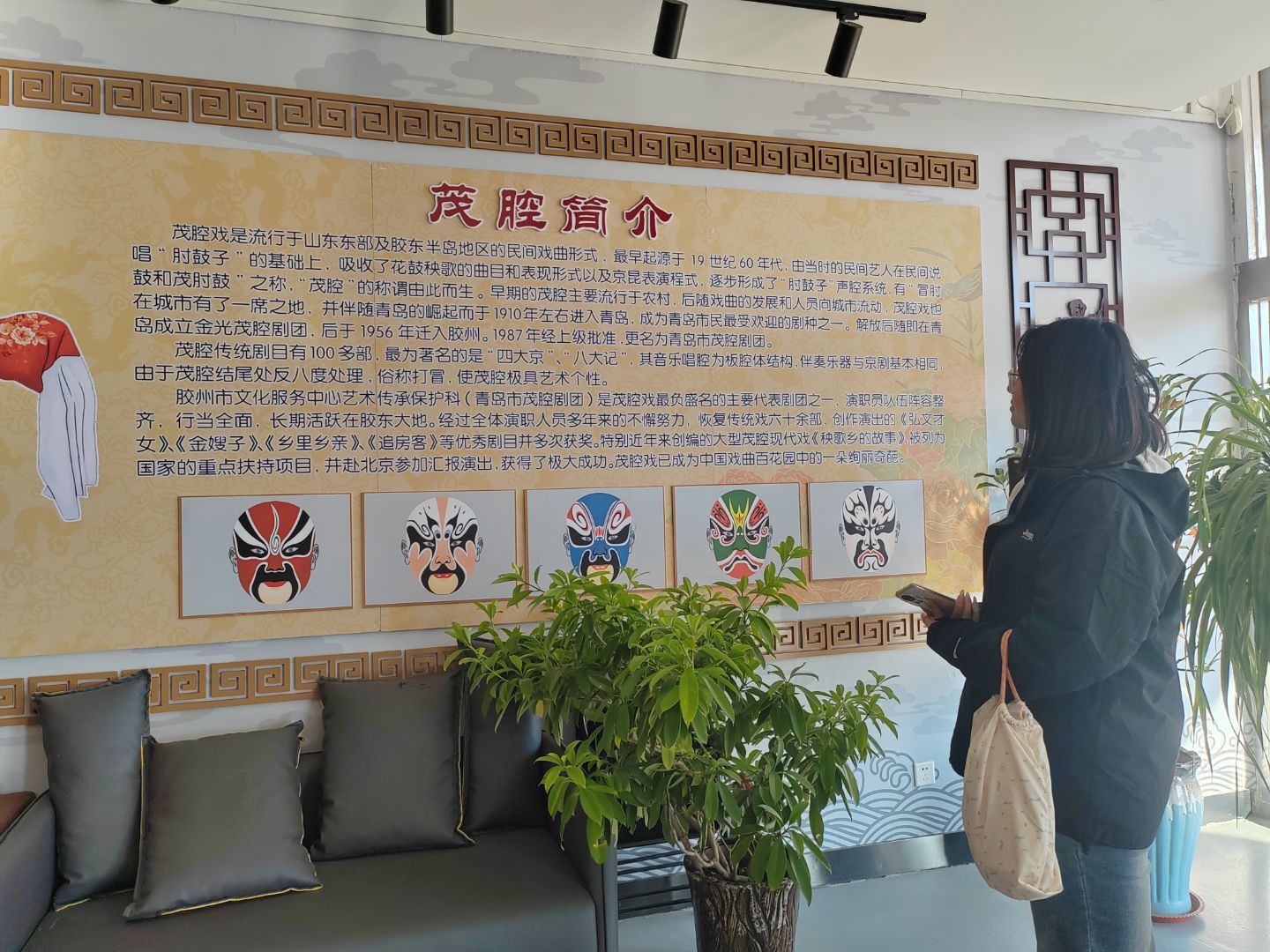 圖為實踐隊員通過劇團內部宣傳欄,了解茂腔歷史簡介和發展過程。張昕 供圖