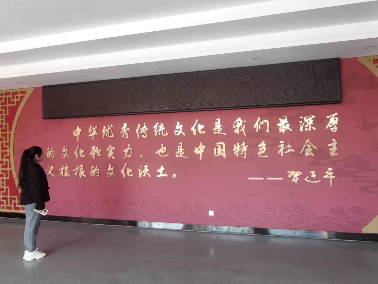 圖為實踐隊員瀏覽領導人習近平寄語,感悟傳統文化傳承之重要。楊轢文 供圖